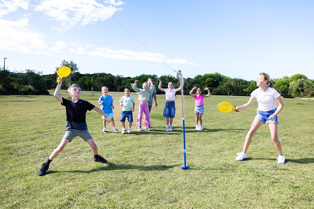 We're bringing back the classics with Swing Tennis – the ultimate backyard game for all ages! Simply set it up in seconds and get ready for endless fun with a sturdy, ground-secure pole, an adjustable 2-piece pole (152-167cm) to suit all player heights, and Cooee-designed paddles featuring hands inside the racquet for a unique touch. The durable tennis ball attached by a resilient cord keeps the game going for non-stop action!