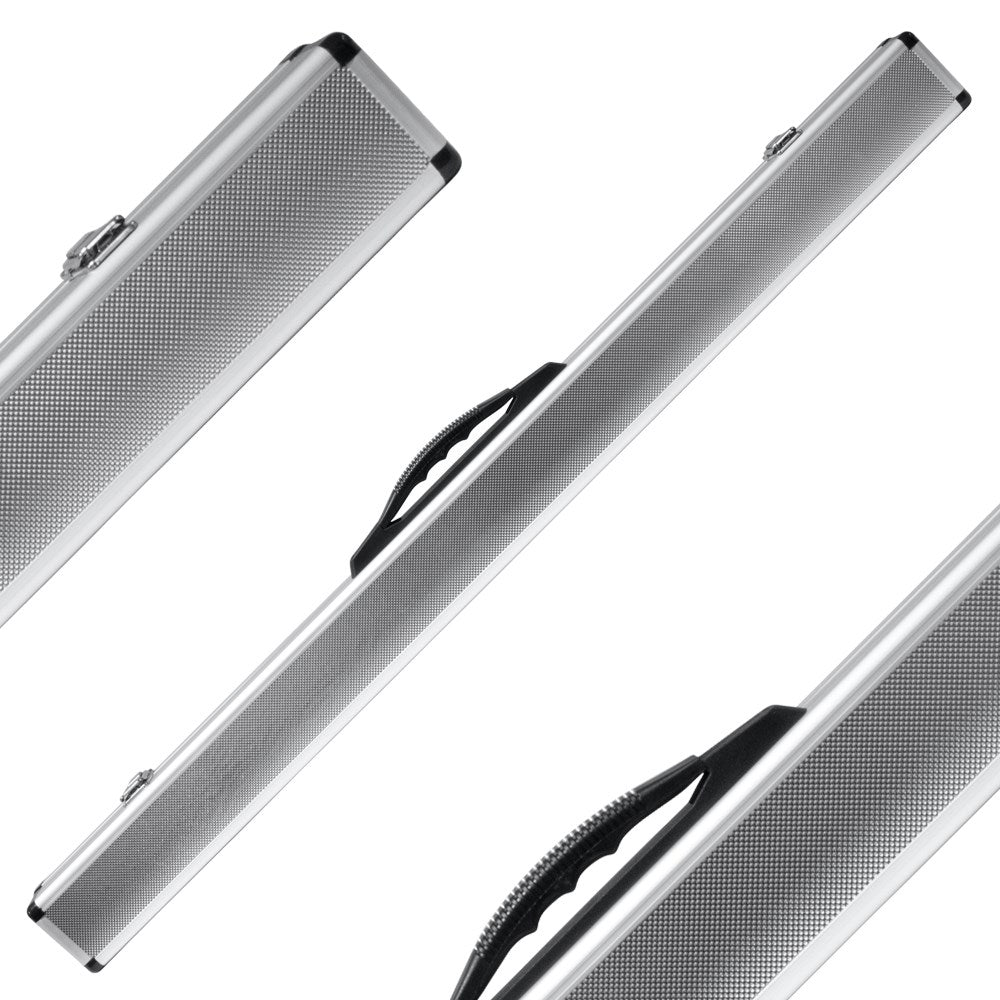 Formula Sports Aluminium Hard Cue Case measures 90cm/35" in length and is designed to fit a 57" 2 piece cue and extension piece. This case has a rigid aluminium exterior and foam padded lining to protect your cue when storing or transporting. It features secure metal clasps and a sturdy carry handle.