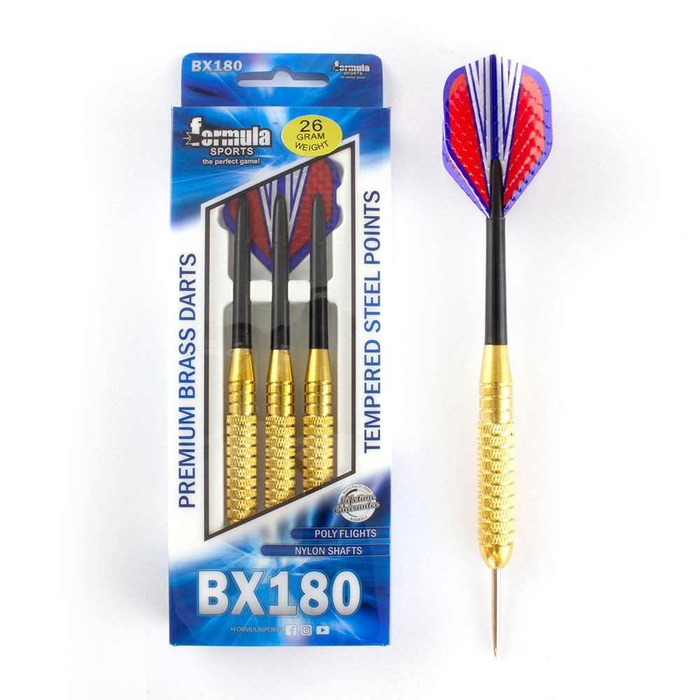 BX180 Premium Brass Darts are engineered to a very high level of accuracy. As a result, they are one of the best quality brass darts in the Formula Sports range Fitted with steel high gauge precision dart points. High performance 100 micron flights and nylon shafts.