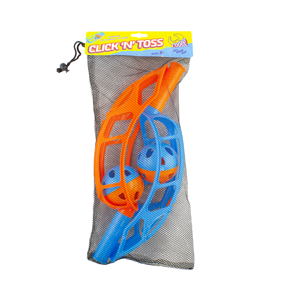 Introducing Click n Toss, the upgraded version of Scoop Ball that takes outdoor fun to a whole new level! With Click n Toss, you can scoop the ball through the air or click it through the scooper, making the game faster and more exciting. Aim and launch for hours of thrilling gameplay that will challenge players of all ages. The perfect game for any location as the portable bag, allows you to take the excitement to the beach, park or any location.