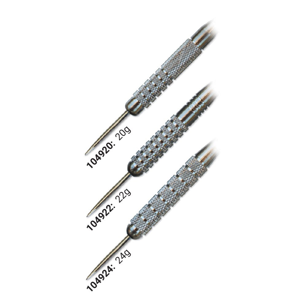 Fitted with steel points, 100 micron flights and nylon shafts. The design features a black, blue and grey design that will be great to customise your darts accessories.