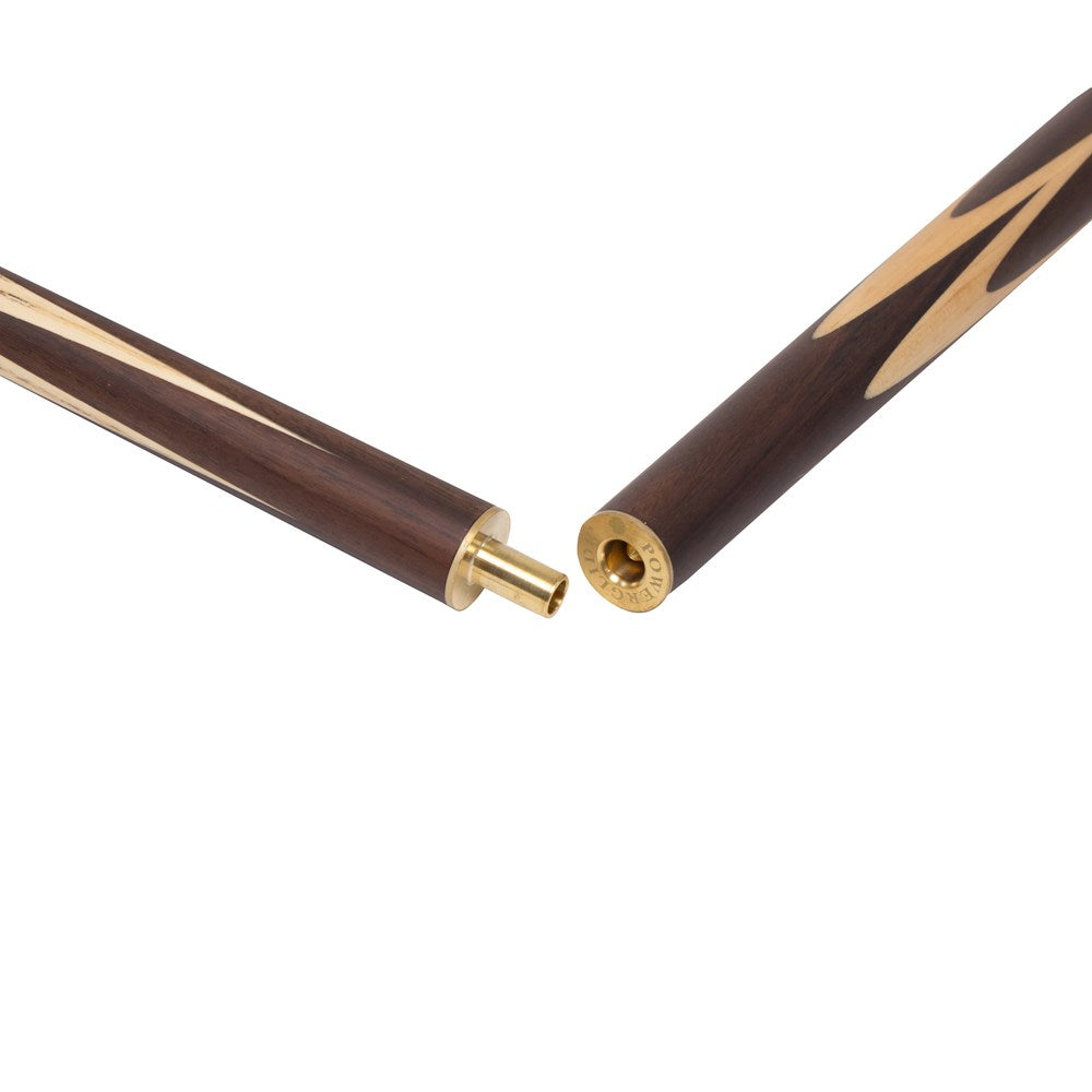 PowerGlide range of snooker cues uses the latest manufacturing technology and the best quality materials. Enhanced grain ash shafts provide consistent strength, power and performance. The matching straight grain with clear feathering aids players lining up their shots. The Rosewood butt features stylised veneers that add style and elegance to the cue. All PowerGlide 2 piece snooker cues are 57inch, fitted with brass ferrules, 9.5mm tips and complete with precision engineered quick release brass joints providing minimal turn to lock the joint into a positive closure.
