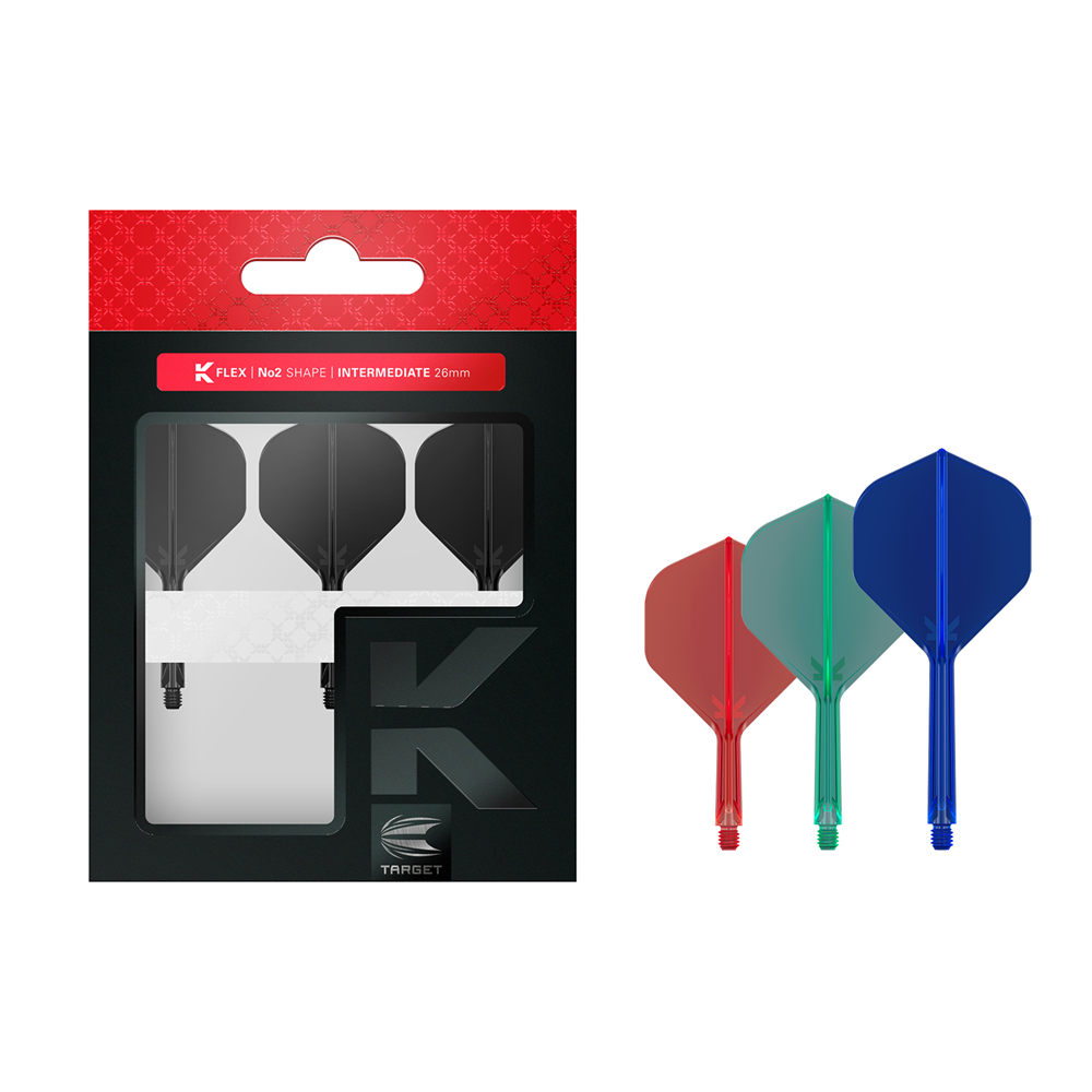Introducing the No.2 shaped K-Flex by Target Darts, a revolutionary integrated flight and shaft system seamlessly fused for durability and precision. Engineered for superior performance, K-Flex features a patented lightweight integrated flight and shaft system that guarantees a more consistent throw, compatible with most steel tip and soft tip dart barrels.