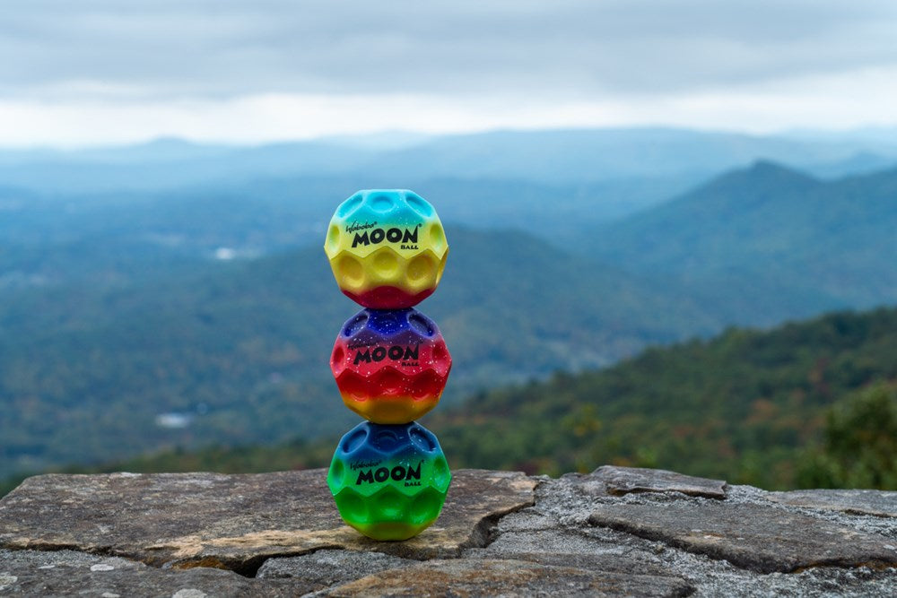 A small step for Waboba, a giant bounce for mankind. The Moon's crazy, gravity-defying bounce is out of this world. It’s extremely addictive to play with on pavement, at a skate park, in a tunnel, in a gymnasium - everywhere there's a hard surface.