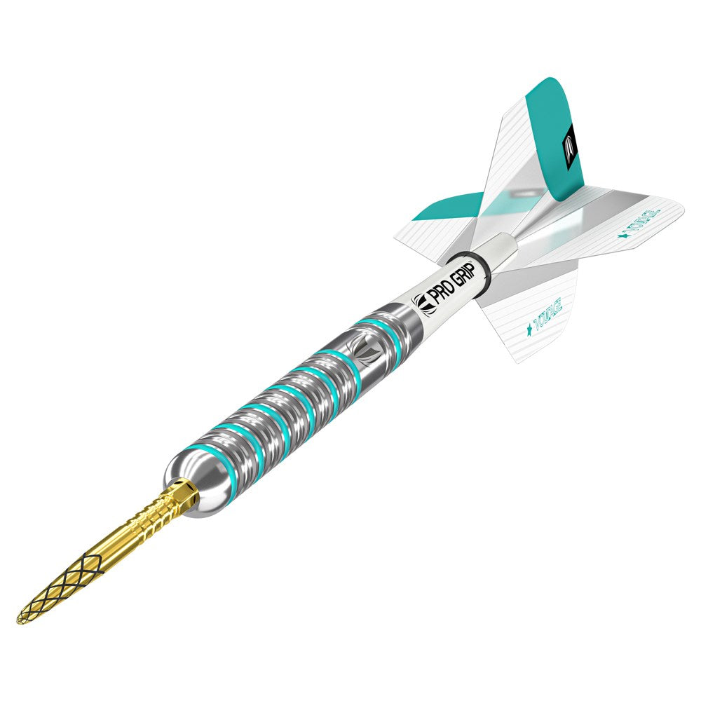 Presenting a combination of radial grooves along the length of the barrel, energetic teal colour and hand sandblasted cuts - the Rob Cross Gen 2 offers a simple yet elegant grip. The dart features the Swiss Diamond (SD) point.